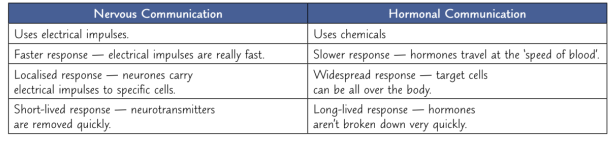Nervous communication vs hormonal communication