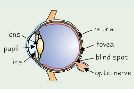 Where the optic nerve leaves the eye is called the blind spot - there are no photoreceptor cells so it is not sensitive to light