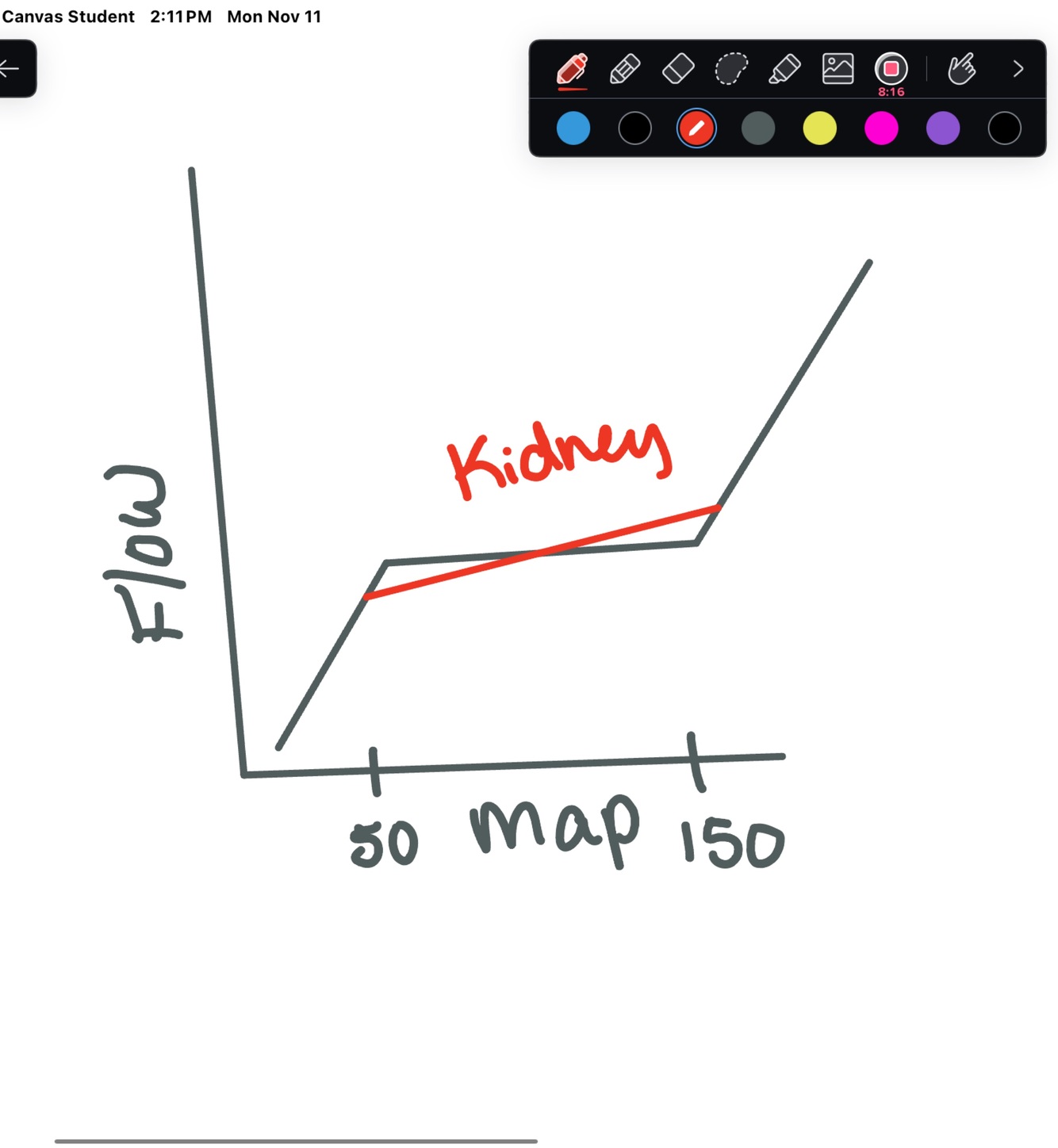 what type of graph would you see in autoregulation of blood flow in the kidneys