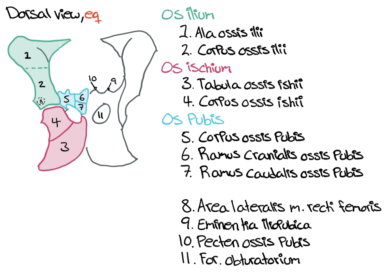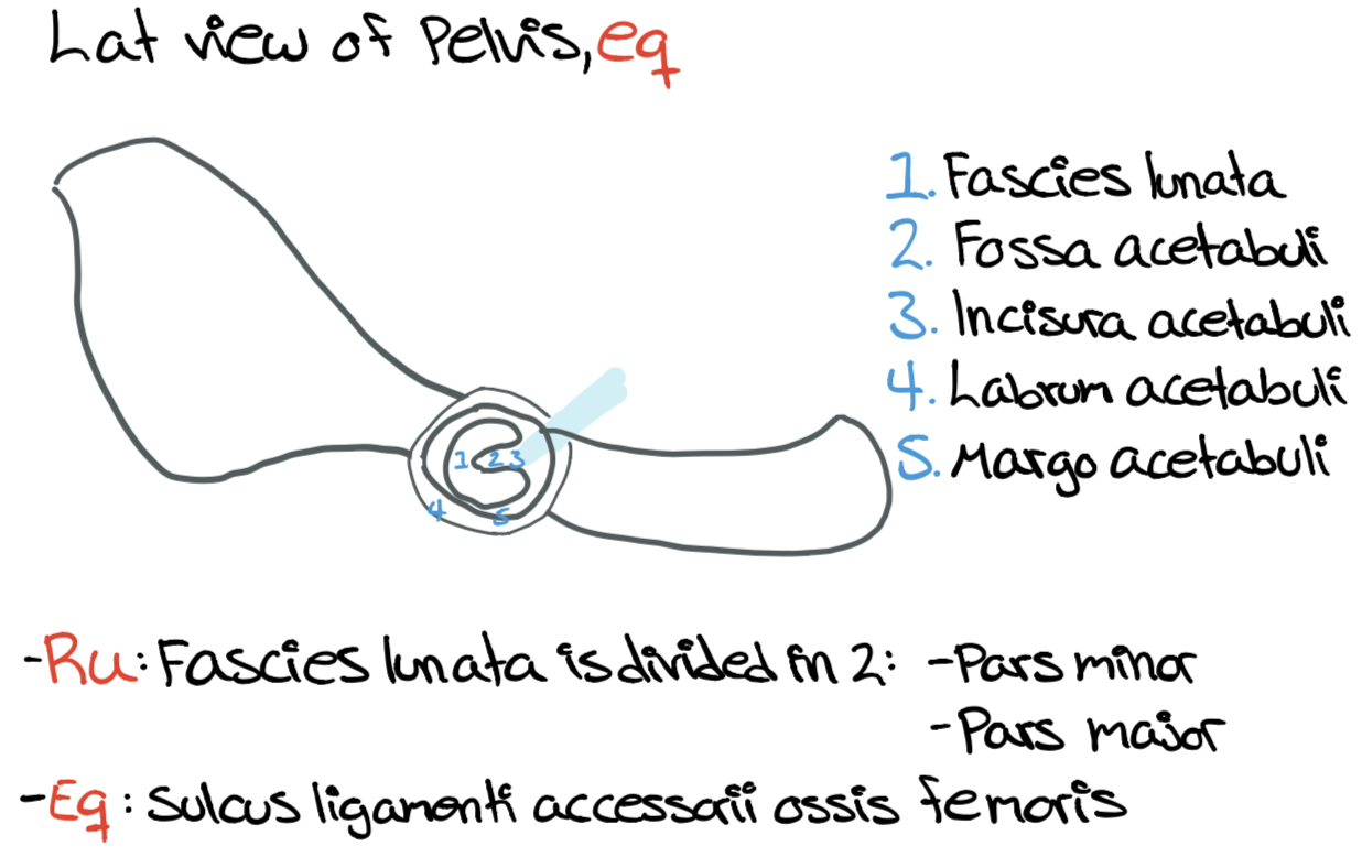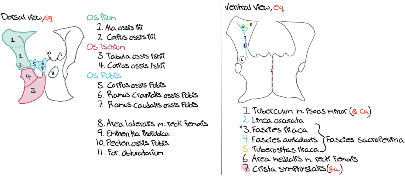 Draw the pelvis from dorsal and ventral view (eq)