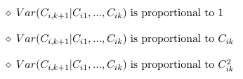 Assumption 1) Incremental losses are independent and identically distributed. Assumption 2) The variance/mean scale parameter is fixed and known Assumption 3) Variance estimates are based on an approximation to the Rao-Cramer lower bound