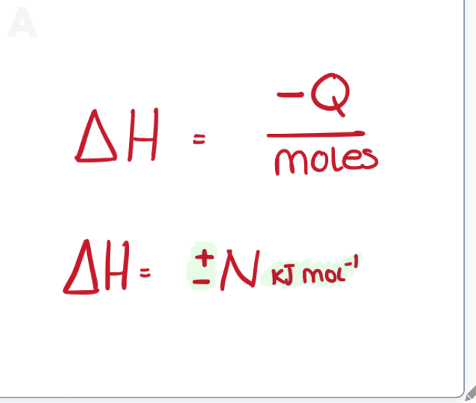Combustion/solution calorimetry equation for determination of enthalpy (symbol + word)