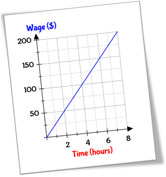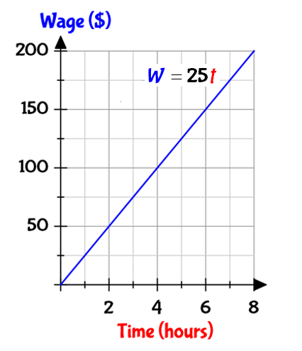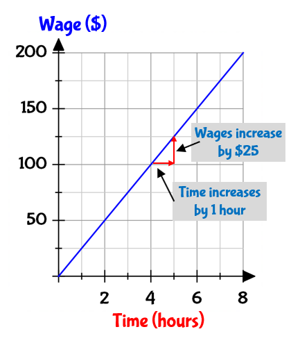For each increase in time of 1 hour, wages increase by $25.