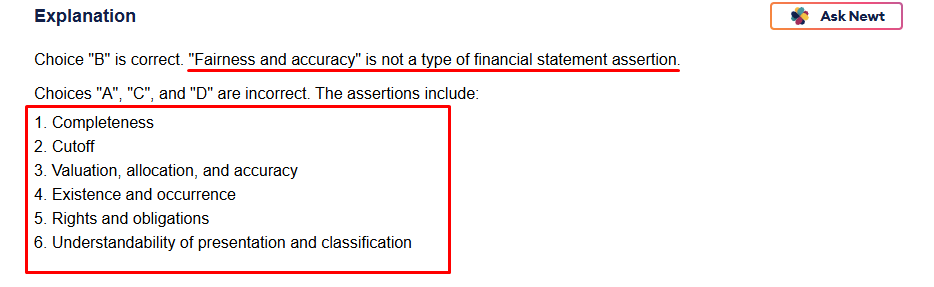 Choice “C” is incorrect. Reviewing a list of employees who were terminated and making sure that they have been removed from the calculation tests the existence of the employees included in the calculation, not the completeness.