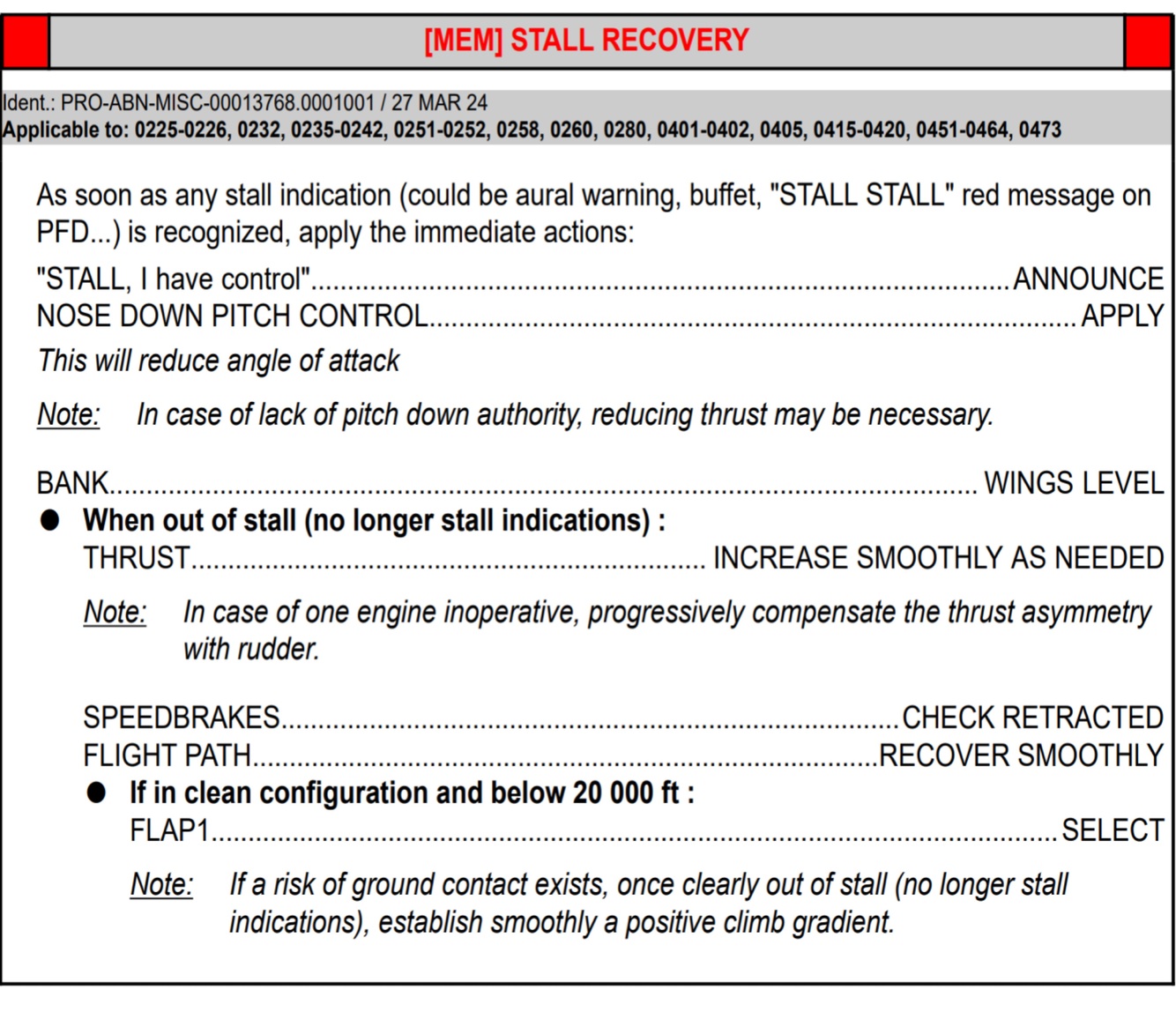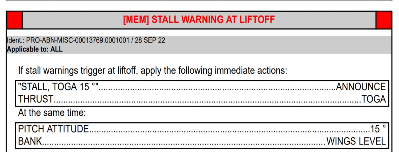[MEM] STALL WARNING AT LIFT OFF