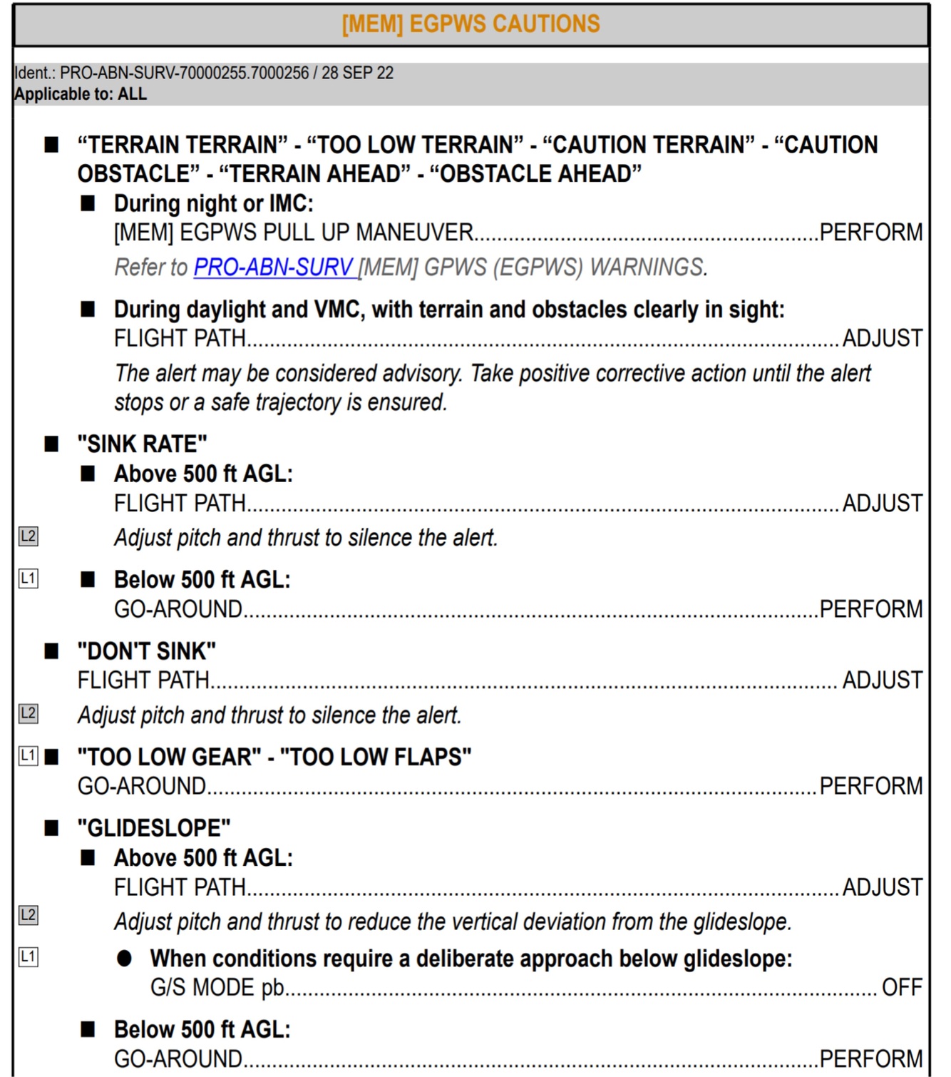 [MEM] GPWS/EGPWS CAUTIONS