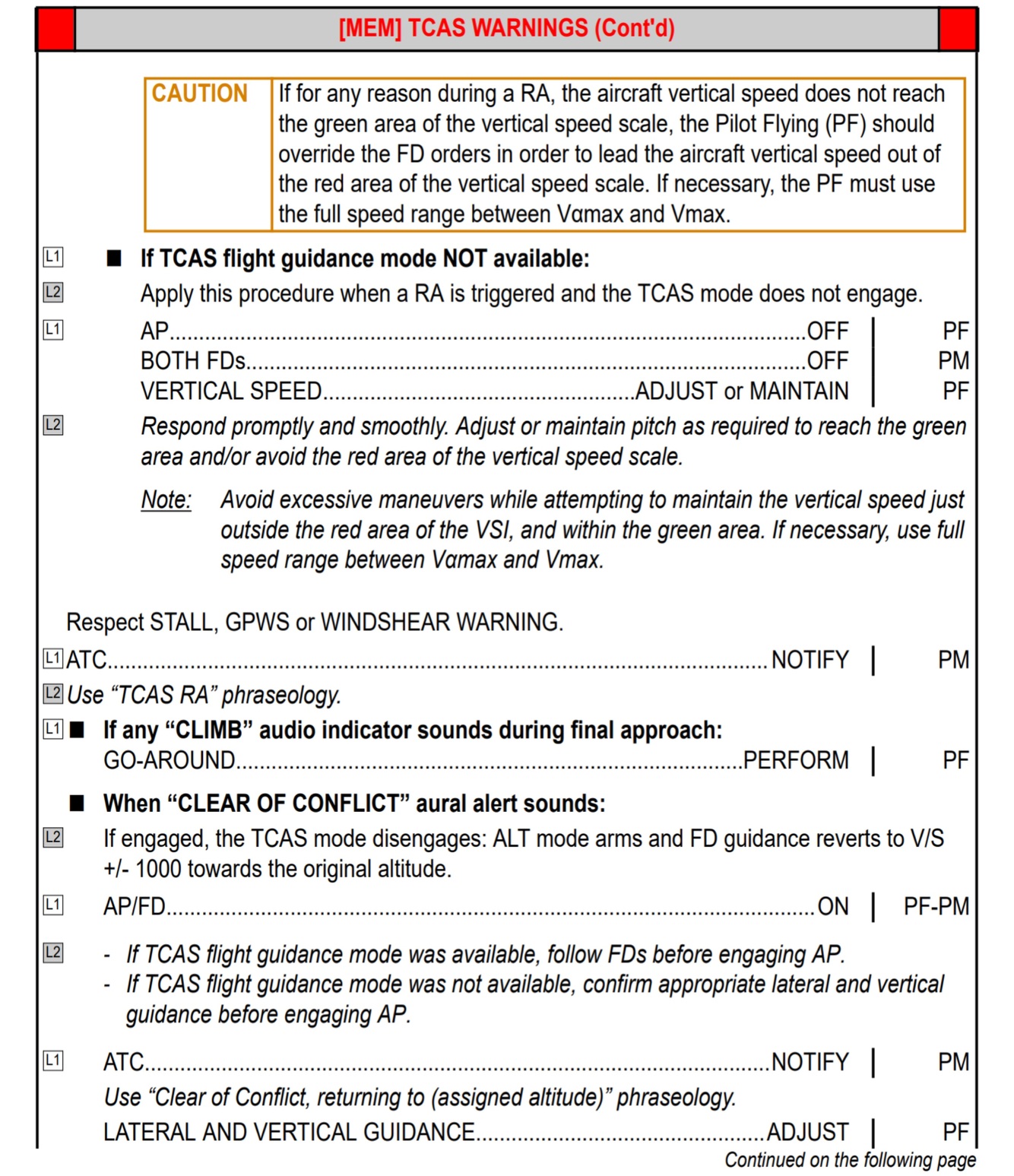 MEM] TCAS WARNINGS