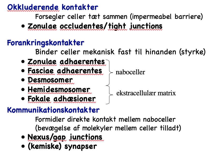 Cellekontaker oversigt: Nævn kontakten, forklar kort