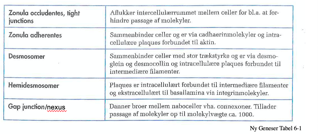 Kig a4 for info om de forskellige typer epithel