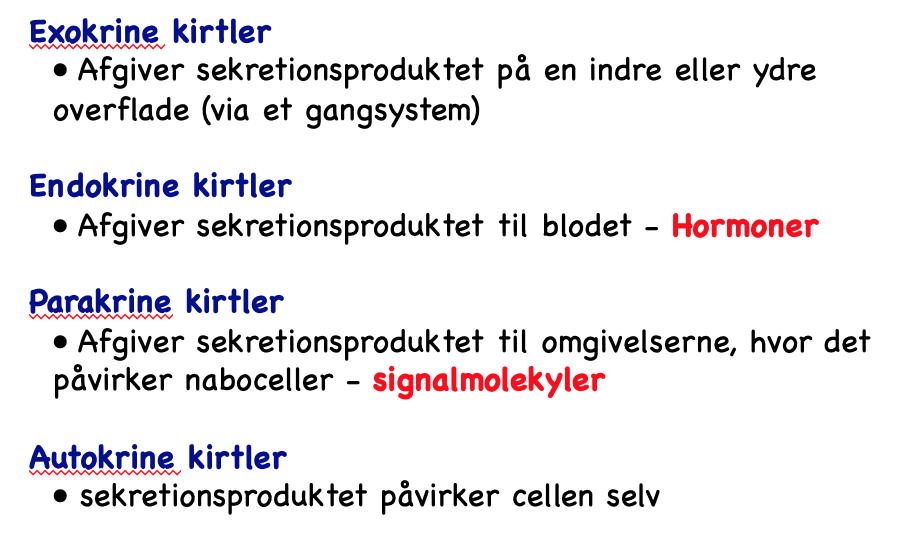 Nævn de 4 typer af kirtler: