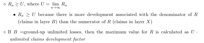 Siewert Advantages: 1. provides an estimate of excess losses at early maturities even when excess losses have not emerged. 2. Development factors for limited losses are more stable than those determined for excess losses. Disadvantage: does not explicitly recognize excess loss development