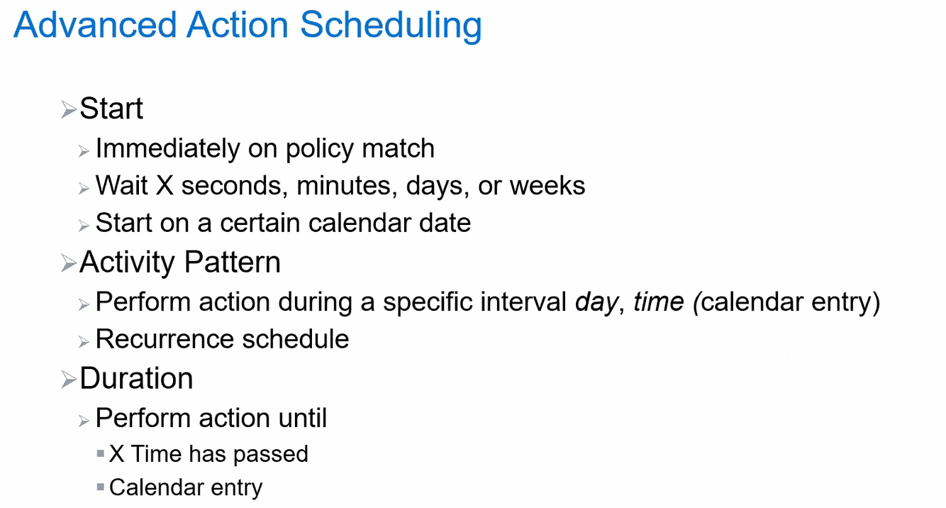 scheduling an action is useful when e.g. you run muliple scripts and you need to run them after each other and not all at the same time