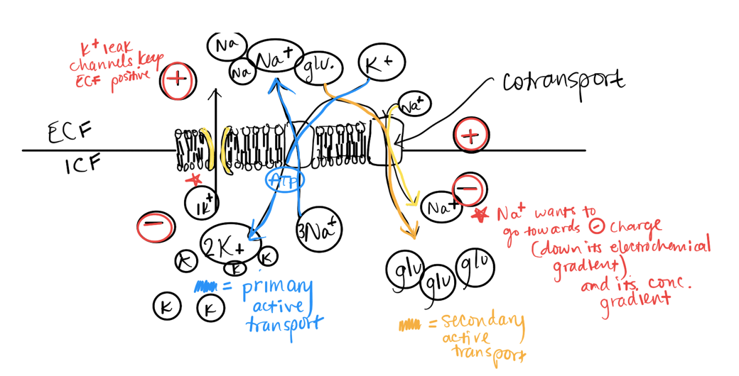 The Na+/K+ ATPase is used to generate a Na+ gradient which is then used for glucose uptake by cells via secondary active transport (choices B and C are wrong). Uptake of glucose is mediated by the Na+-glucose cotransporter. Inhibiting the Na+/K+ ATPase would destroy the Na+ gradient and in turn decrease glucose uptake