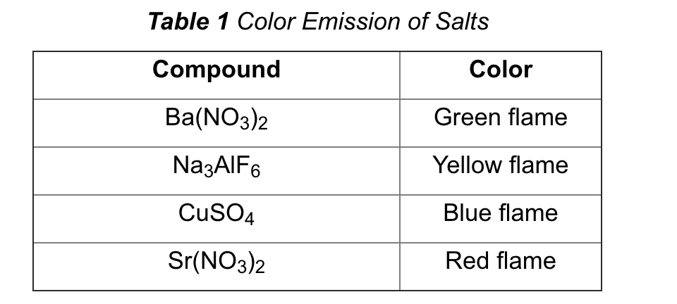 Which one of the materials listed in Table 1 will produce visible light of the shortest wavelength?