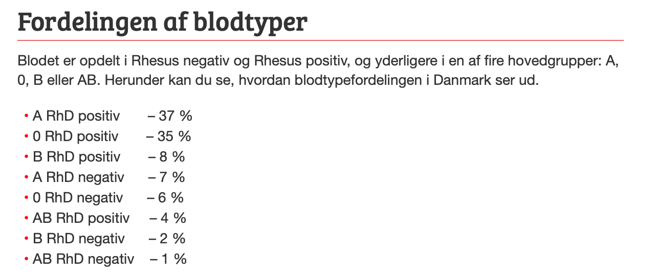 Hvilke AB0-fænotyper er hyppigst i Danmark?