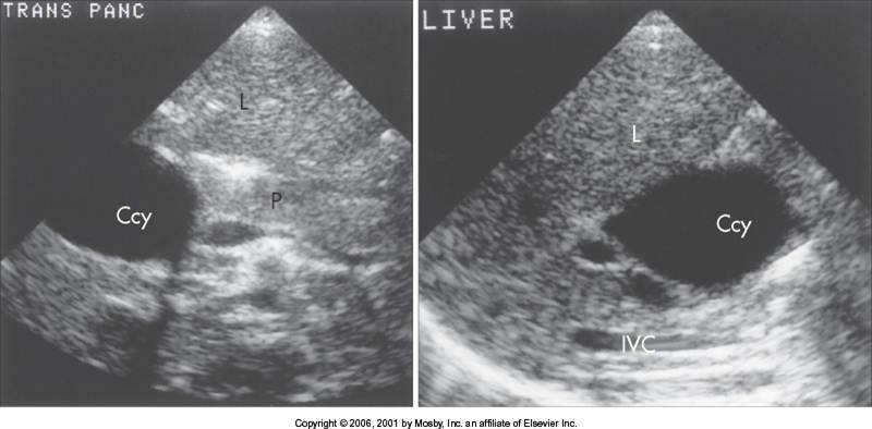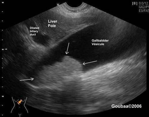 (dilated biliary duts: A CBD more than 6mm in diameter is considered borderline and more than 10 mm is dilated – will vary by protocol)