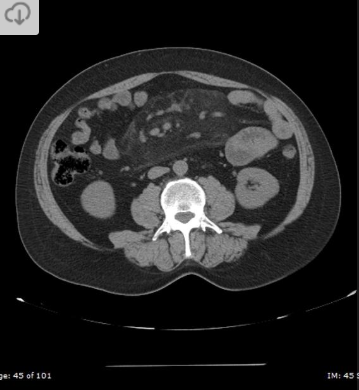 64 anos, mulher com Dor abdominal intensa