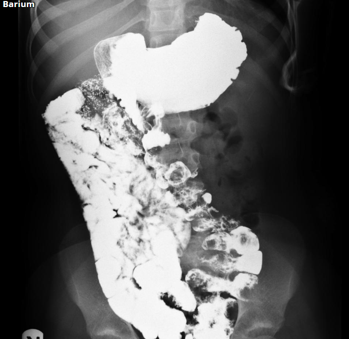 Divertículos no sigmóide podem ser observados.