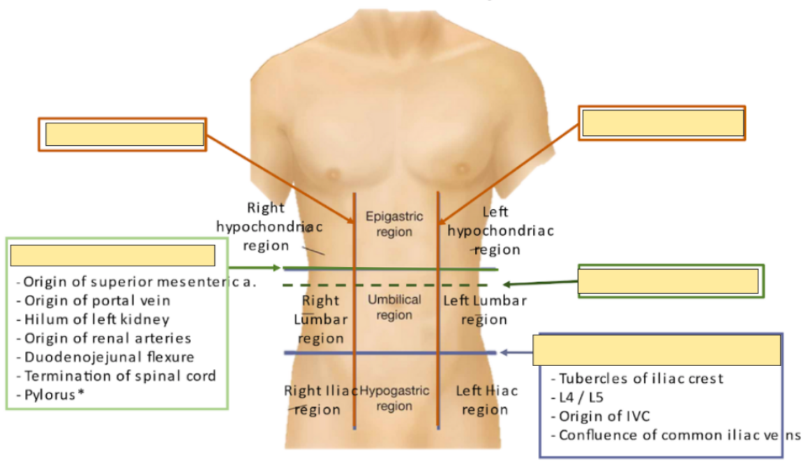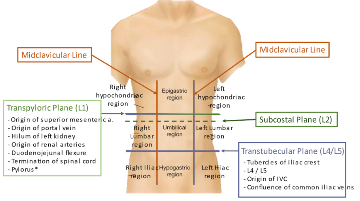 what level is the transpyloric plane, subcostal plane and the transtubercular plane?