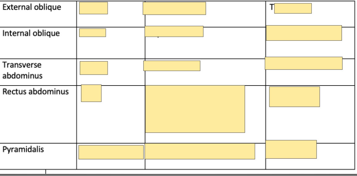 all the abdominal muscles, functions, fibre direction, nerve supply