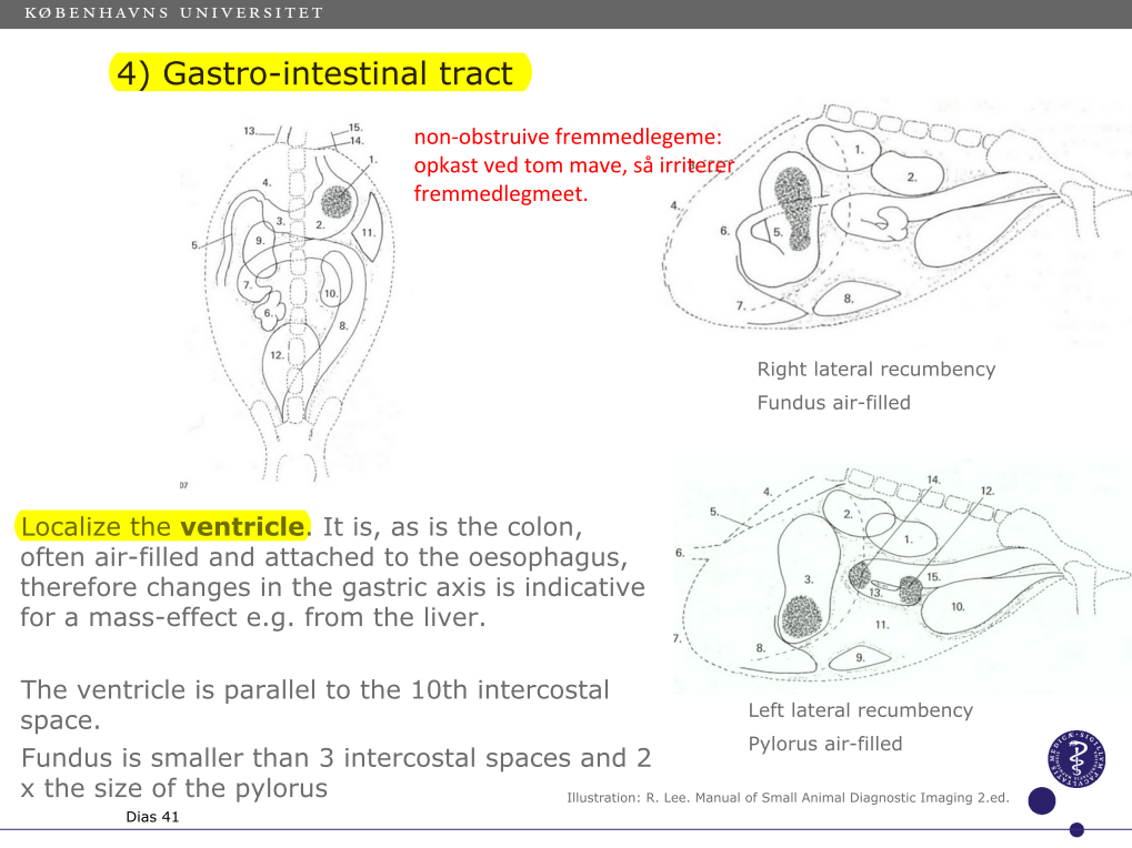 Left lateral view - luft i pylorus eller fundus (hvad vender op)?