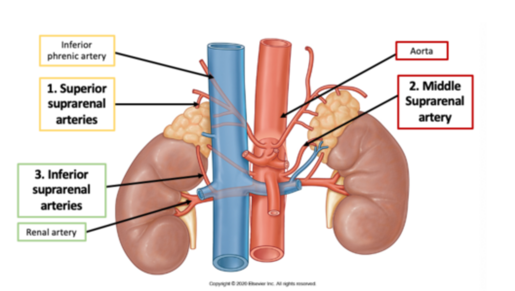 1. Superior suprarenal artery - comes from Inferior phrenic artery
