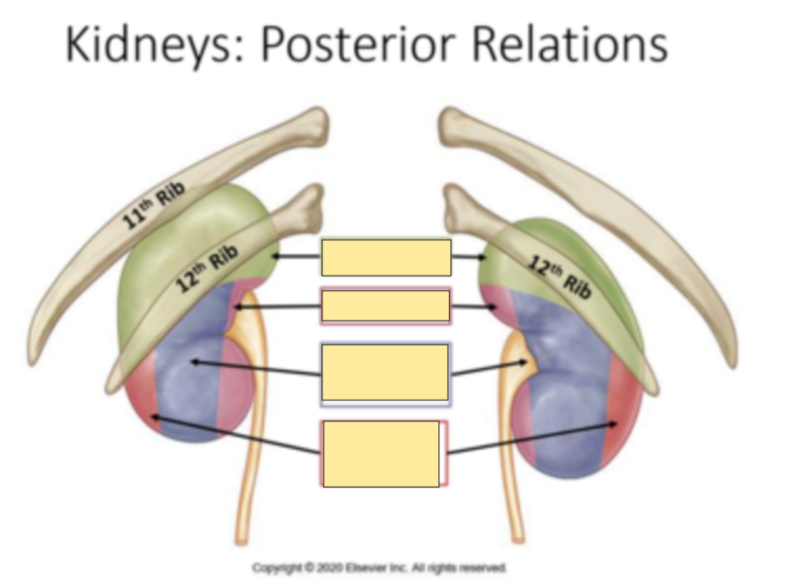 right and left suprarenal veins (r = drain into IVC) (l = drain into L renal vein)