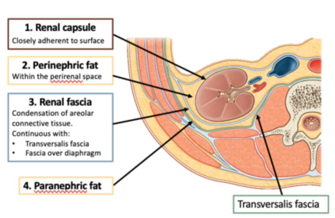 Which covering on the kidney is continous with the transversalis fascia and fascia over the diaphragm