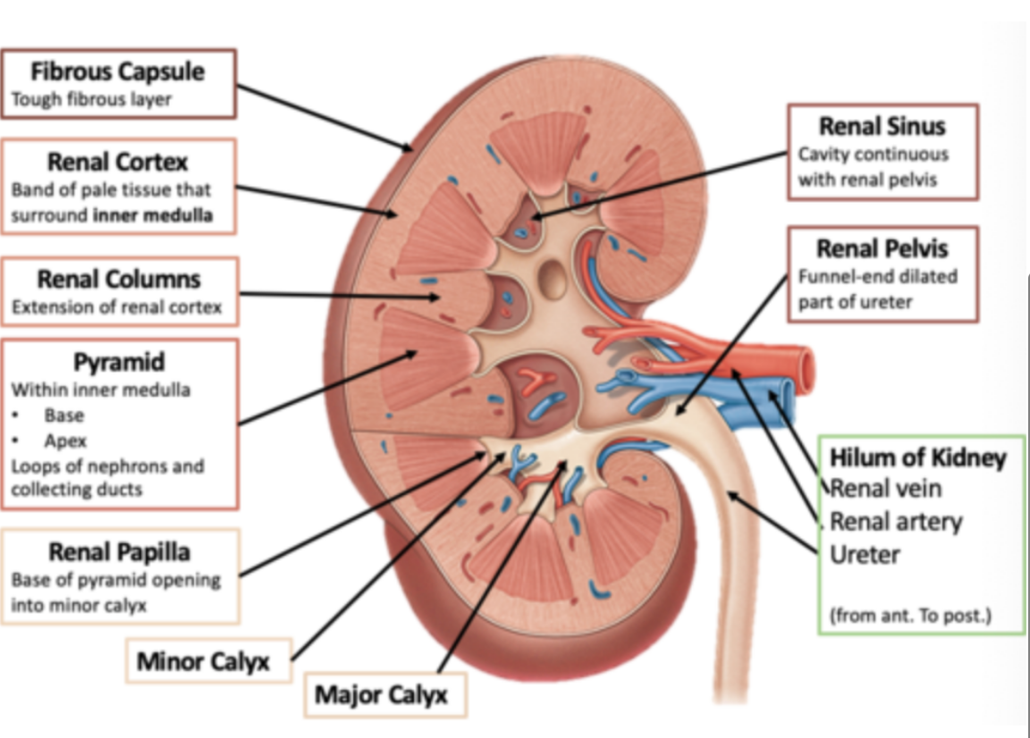 *Transmits, from anterior to posterior, the renal vein, renal artery & the ureter (VAU). ant to post