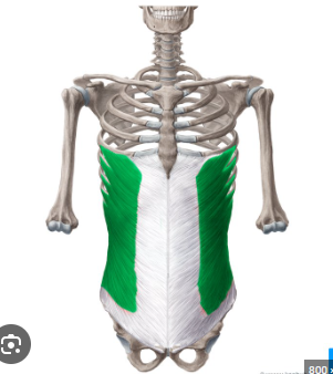 Attached to ribs 5-12 -> iliac crest, pubic tubercle and linea alba