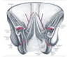 Fibers run inferomedially (hands in pockets) on anterior wall