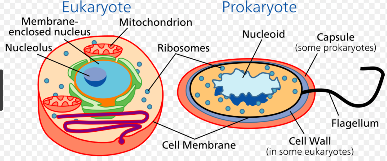 Eucariontes - Material genético separado por uma membrana nuclear, forma o núcleo