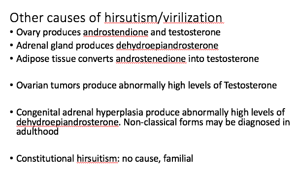 All of the excess andostenedione is converted to testosterone which causes the signs and symptoms of PCOS