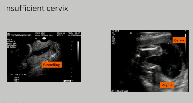 Insufficient cervices usually cause a painless, premature dilation resulting in early birth, most commonly in the second trimester before fetal life is viable