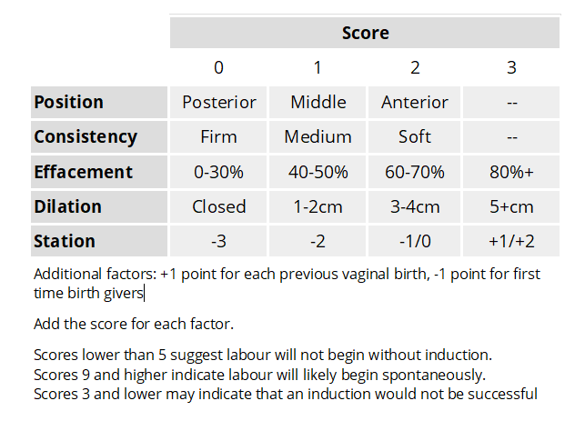 Score of <6 indicates labour is unlikely to be spontaneous
