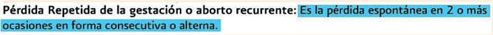 Pérdida espontánea en 2 o más ocasiones en forma consecutiva o alterna