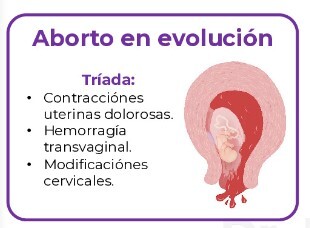 ¿ Cuál es la triada caracteristica del aborto en evolución/inminente ?