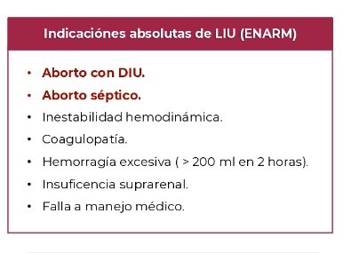 ¿ Cuáles son las indicaciones para realizar LIU en un aborto ?