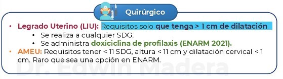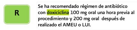Antibiótico recomendado previo a realizar tratamiento quirúrgico (AMEU o LIU ) en abortos