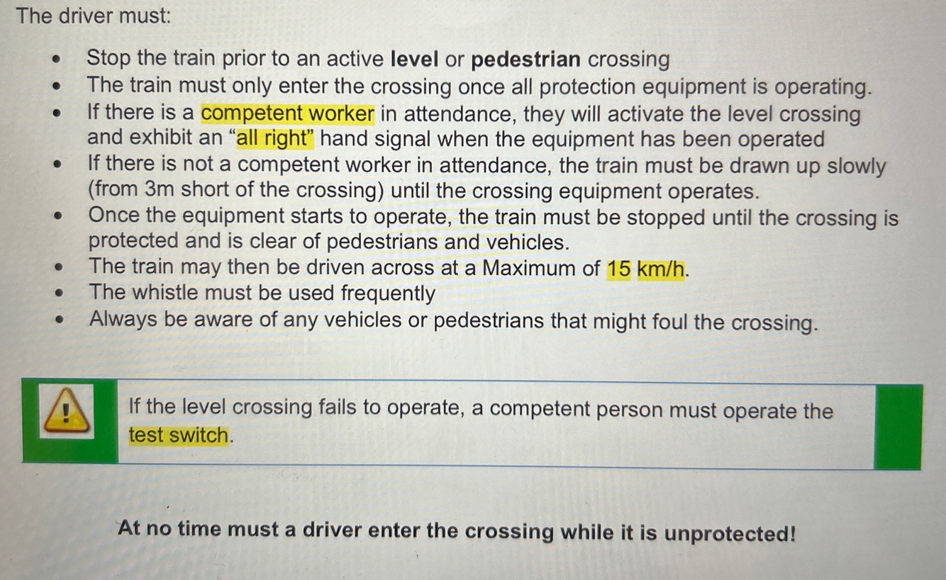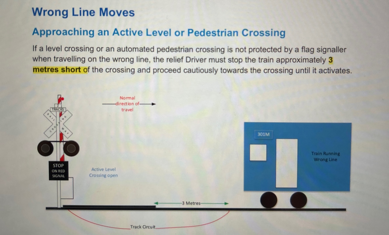 ABS - To which direction does the driver protect their train and how far do they go?