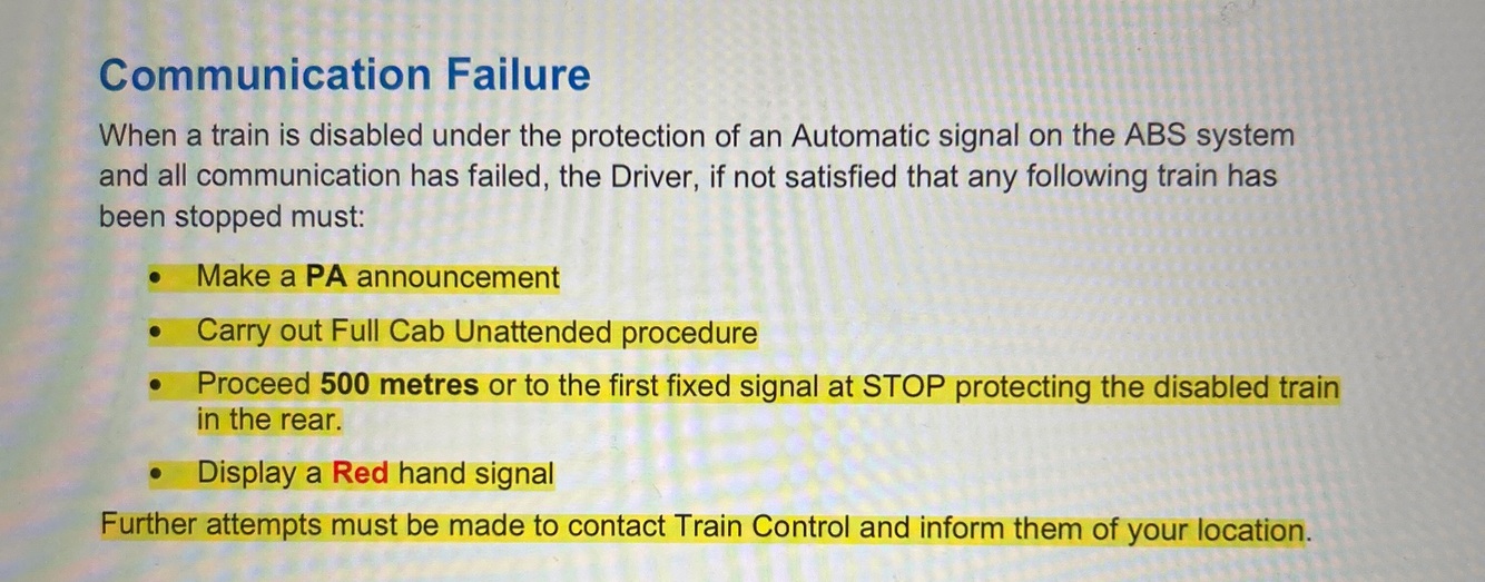 ABS relief from the ADVANCE do you need a TA? Speeds to the disabled train?