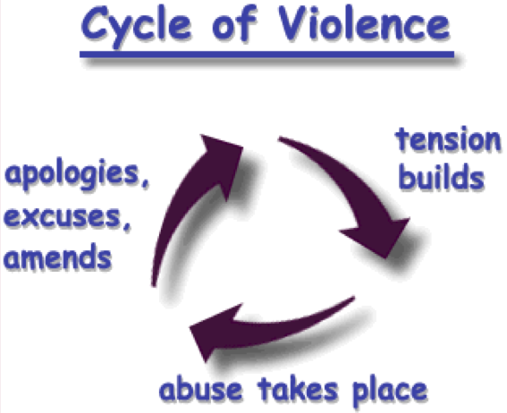 There is something called the “cycle of violence” which is perpetuated in abusive relationships. What are the 3 main parts?