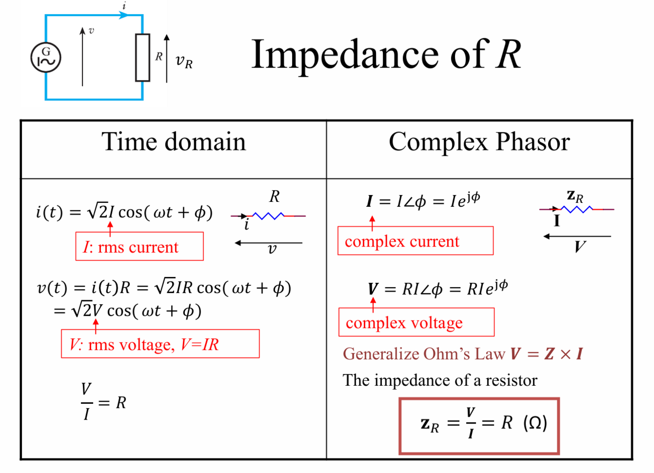 Try to derive impedence of a resistor, Zr, from time domain form to complex phasor form.