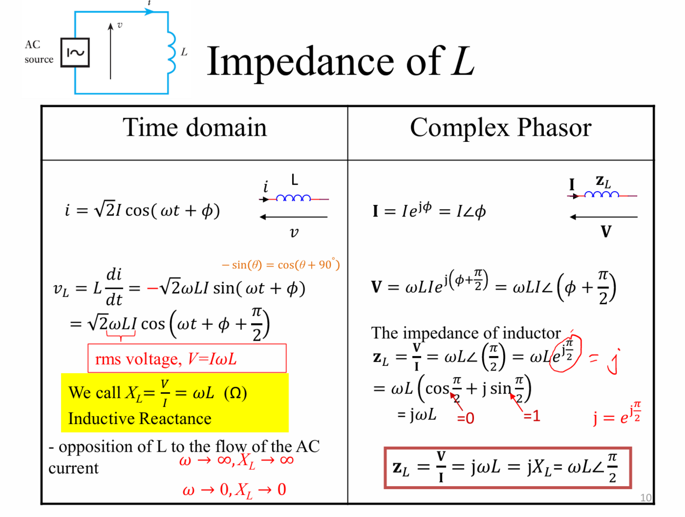 Try to derive impedence of an Inductor, ZL, from time domain form to complex phasor form.