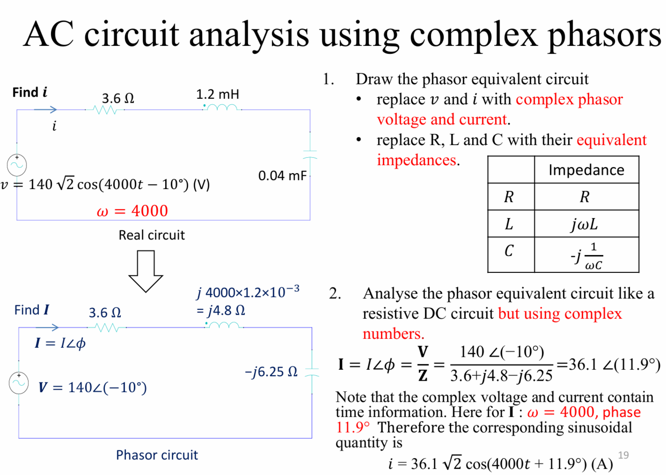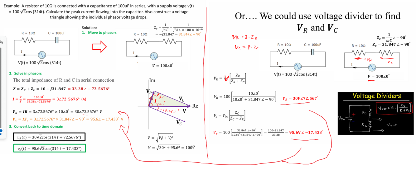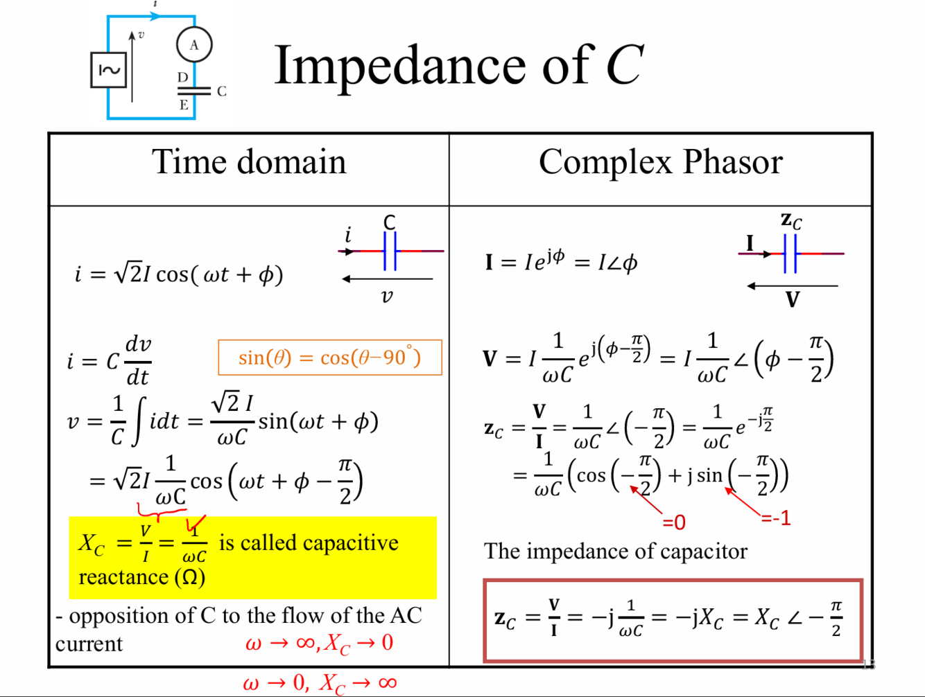 Try to derive impedence of a capacitor, Zc, from time domain form to complex phasor form.