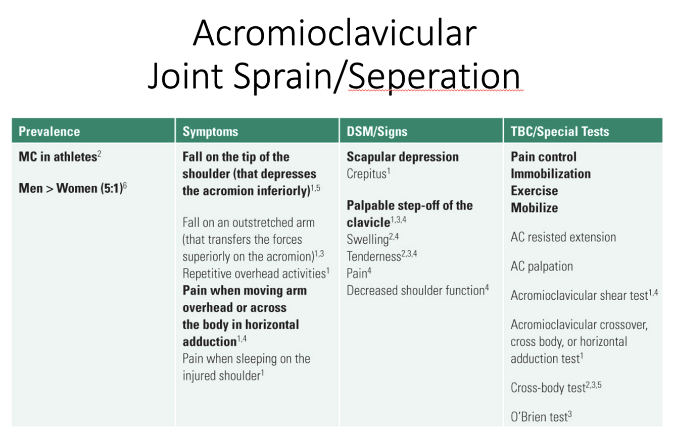 Shoulder AC Joint Sprain - Characteristics: