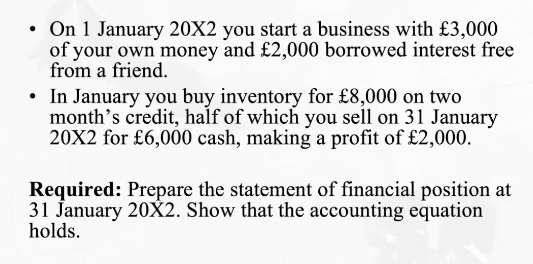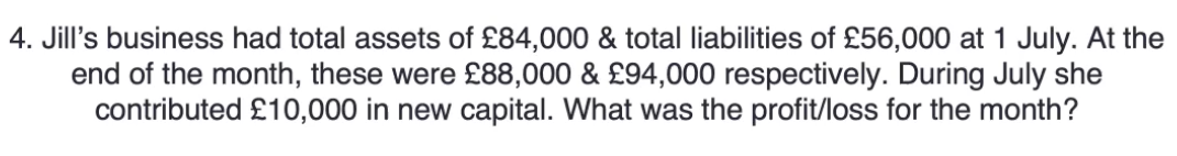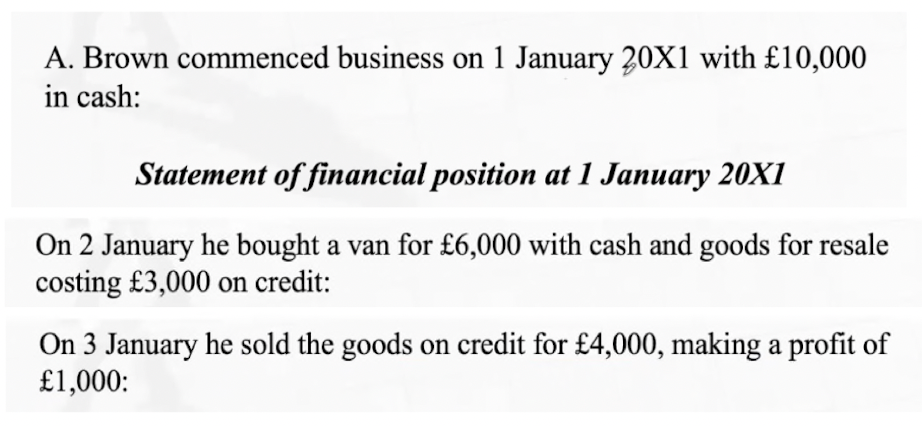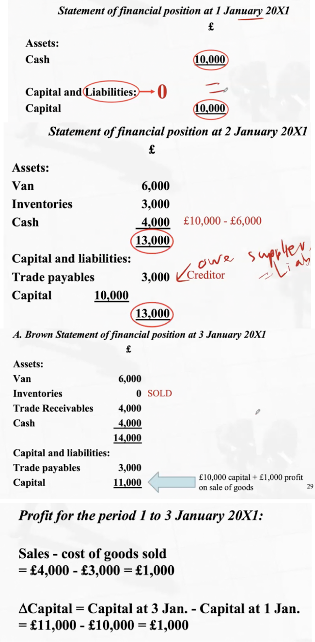 Jan 1/ business [assets] has £10,000, and no liabilities as no transactions yet. Capital= £10,000