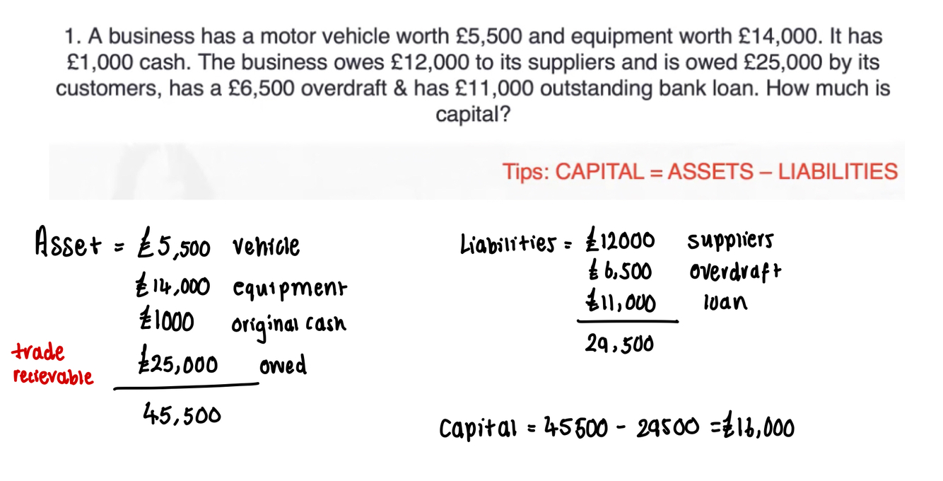 capital section is not the original £3000 and £2000 loan, it is the original £3000 and then the £2000 profit. Cannot include liability in capital