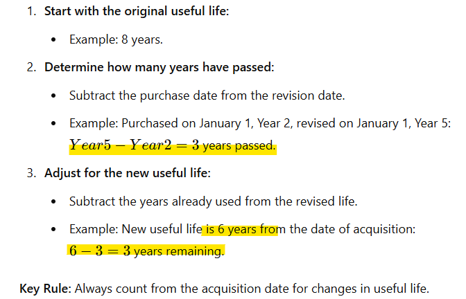 How do you calculate the remaining useful life when an asset’s life is revised?