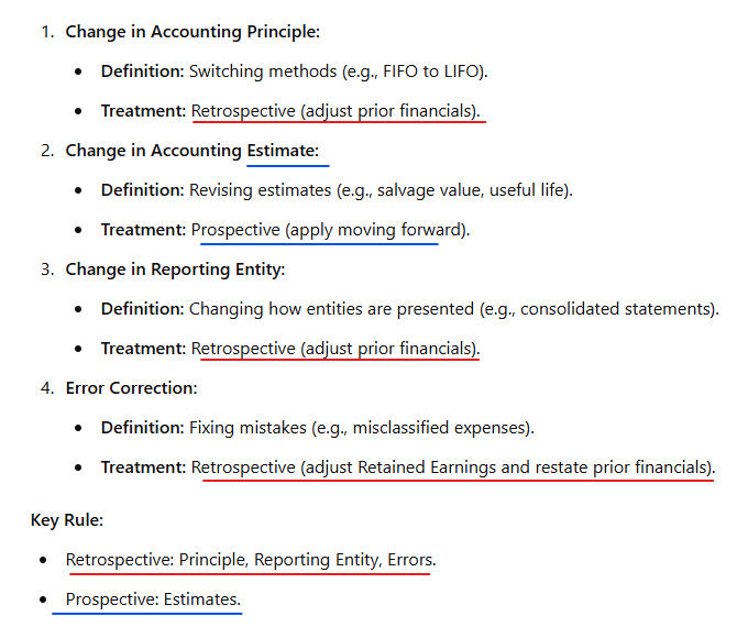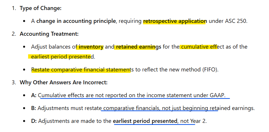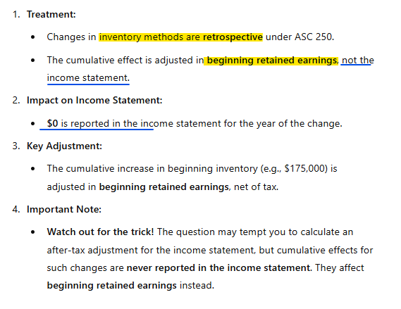 How is a change from LIFO to FIFO accounted for, and why are other treatments incorrect